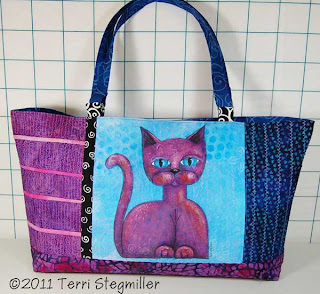 These two handbags/totes were made at the request of a client who purchased a previous kitty bag from me. Actually she requested one blue kitty handbag but I decided to go ahead and make two bags and give her the choice. Well lo and behold she purchased them both. I'm thrilled that both bags will have immediate new homes.